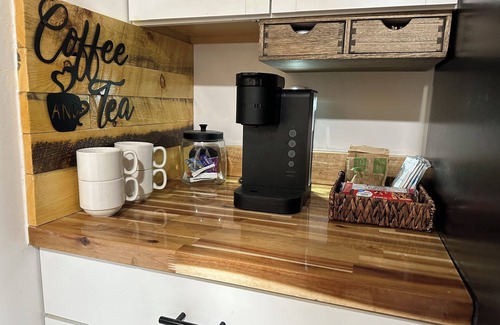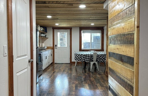 Complete with a full kitchen, laundry room, private bedroom and bathroom. Cozy living space next to a huge steel wood burner, 65” TV with lots of streaming stations to choose from, and includes Wi-Fi access. Everything you’ll need for a short term stay or long one!