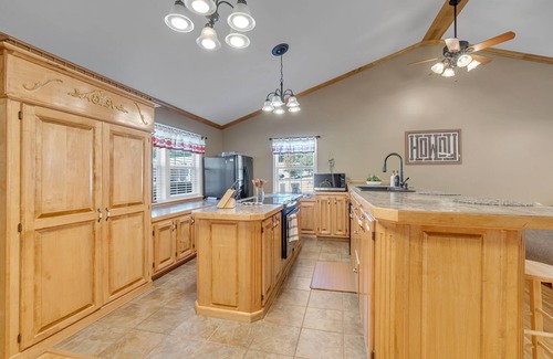 🐻 Regarding the unit: While the max occupancy is 9 people. Towels & linen are provided. Travel sized toiletries, a hairdryer, and handheld steamer are provided. The well-equipped kitchen features an electric stove, refrigerator, and microwave. A drip coffee maker and basic kitchenware is also provided. Guests are responsible to provide any additional amenities desired such as additional toilet paper.