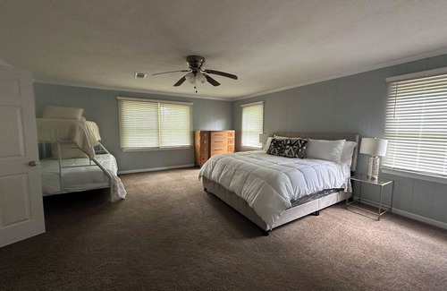 This spacious Midtown Hattiesburg home is just minutes from USM and features 4 bedrooms with 6 beds, sleeping up to 11 guests.