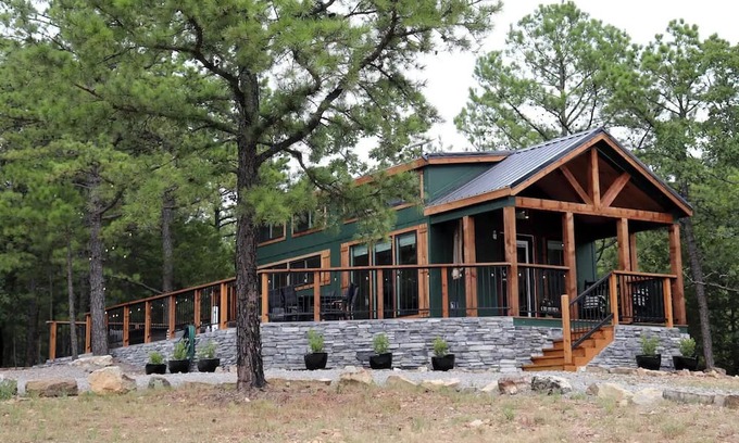 Welcome to Pine Ridge Cabin, a modern tiny home located less than a mile from Sardis Lake boat ramps and swimming beach. The property has a gated entrance for a true private mountain retreat. The home boasts 15 ft ceilings with encompassing windows, so you feel bright, open, and a part of the outdoors without missing any of the views. With over 550 SF of outdoor living space, a fire pit, and a private hiking trail to a panoramic sunset view, you can create an unforgettable experience. Absolutely beautiful Mountain & Lake views from each room in the tiny home, and of course on the huge outdoor patio!