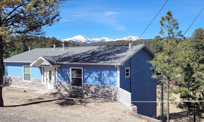The house sits high up in the cool Ponderosa Pines. You will feel like you are in a treehouse! With a wall of picture windows, you can look out and feel lost in the forest with a great view of Sierra Blanca Mountain. Have a morning coffee or glass of wine out on the deck and enjoy sunrises and sunsets. There are 2 identical bedrooms which can easily accommodate 2 families. Each room has its own attached bathroom with 1 queen bed and a twin bunk bed with a pull out trundle. An extra half bath is also available. Get cozy with a nice blanket and sit by the fireplace. A complete and stocked kitchen is ready for you to cook your favorite meals. A washer and dryers is also onsite for you to use at your convenience. So come by, stay a while and enjoy our favorite mountain town.